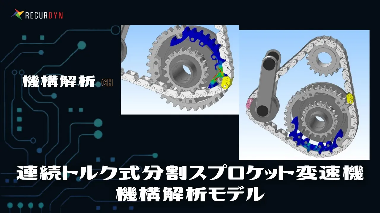 スプロケットをモーフィングすることで変速する連続トルク式の変速機について、チェーンのバタつきやスプロケットとのかみ合いによる振動を考慮しながら、変速時の動力伝達挙動および変速部品にかかる応力を評価。